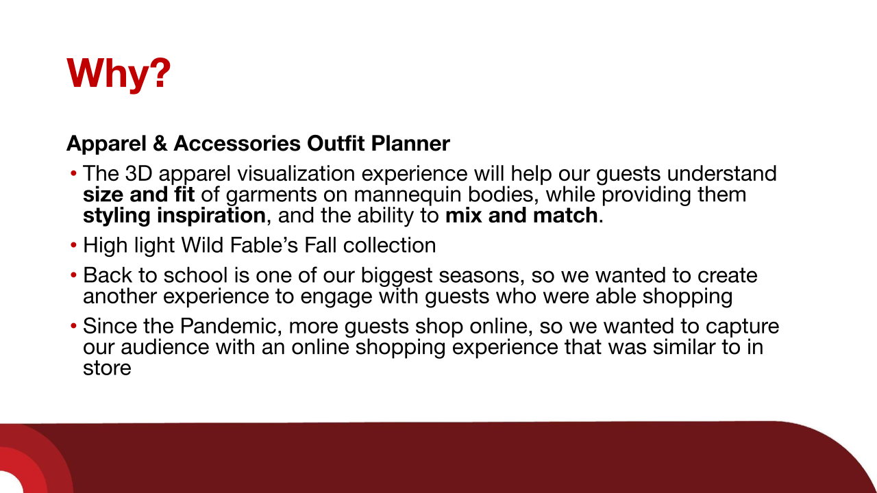 Target launched an 8-week test for guests to showcase their unique sense of style with an Augmented Reality (AR) tool called Outfit Planner. Check out this case study of the Outfit Planner experience I created for this test!